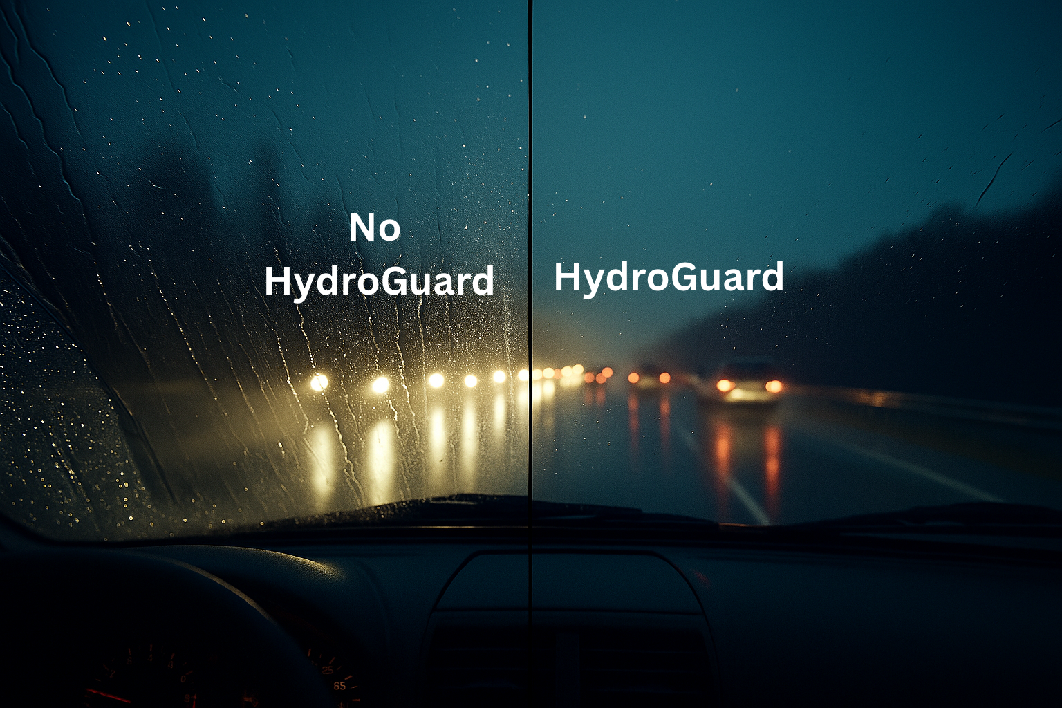 Instantly repel rain, sleet, and glare with HydroGuard™ — the invisible windshield treatment trusted by thousands of drivers.